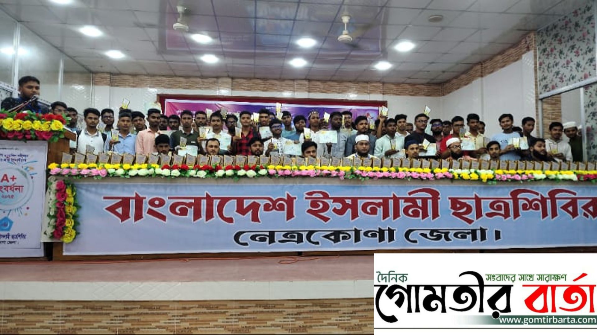 এসএসসি ও দাখিল পরীক্ষায় কৃতিত্ব অর্জনকারী জিপিএ-৫ প্রাপ্ত শিক্ষার্থীদের সংবর্ধনা দেওয়া হয়েছে নেত্রকোনায়। বাংলাদেশ ইসলামী ছাত্রশিবির নেত্রকোনা জেলা শাখার উদ্যোগে সোমবার (২ সেপ্টেম্বর ২০২৫) দুপুর ২টায় শহরের স্থানীয় পাবলিক হলে এ সংবর্ধনা অনুষ্ঠান অনুষ্ঠিত হয়।