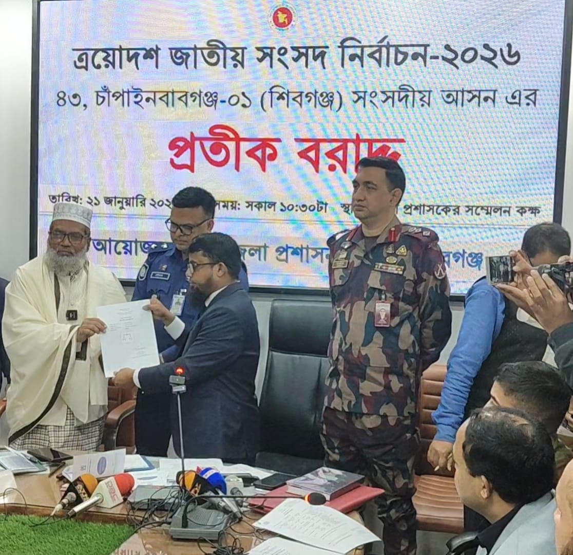 ত্রয়োদশ জাতীয় সংসদ নির্বাচনে চাঁপাইনবাবগঞ্জের ৩টি সংসদীয় আসনে ১৬ প্রার্থীর মধ্যে প্রতীক বরাদ্দ করা হয়েছে। বুধবার সকাল সাড়ে ১১টায় জেলা প্রশাসকের সম্মেলন কক্ষে নির্বাচনের রিটার্নিং কর্মকর্তা ও জেলা প্রশাসক মোঃ শাহাদাত হোসেন মাসুদ প্রার্থী ও প্রার্থীর প্রতিনিধিদের মাঝে প্রতীক বরাদ্দ দেন।