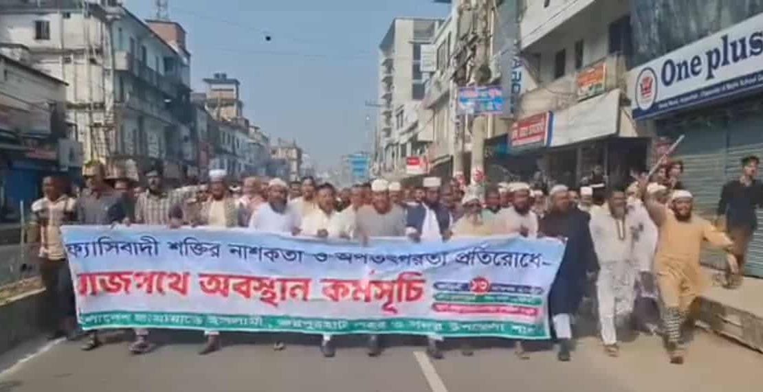 ফ্যাসিবাদী শক্তির নাশকতা ও অপতৎপরতা প্রতিরোধে জয়পুরহাটে জামায়াতের বিক্ষোভ মিছিল ও অবস্থান কর্মসূচী পালন করে।