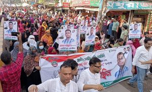 এ সময় “এনসিপির মার্কা শাপলা কলি,” “দিল্লি না ঢাকা-ঢাকা ঢাকা, ইনকিলাব জিন্দাবাদ,” “গ্রাম-শহর অলিগলি, জিতবে এবার শাপলা কলি” শ্লোগানে পুরো এলাকা মুখরিত হয়ে ওঠে।