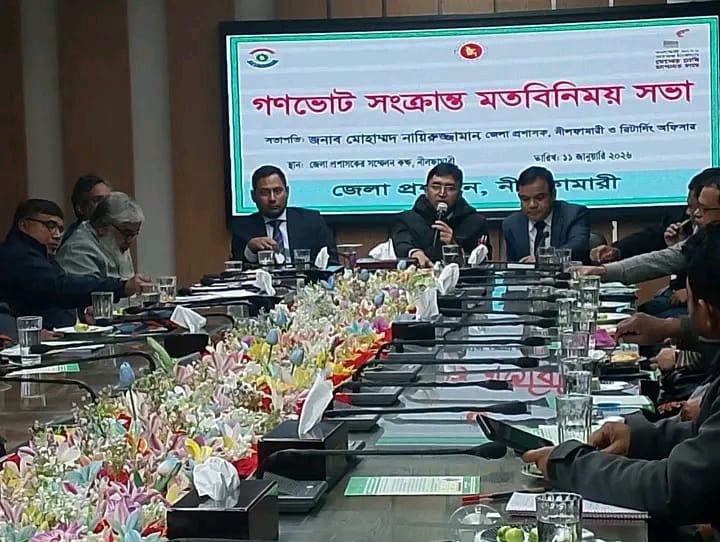 আসন্ন ত্রয়োদশ জাতীয় সংসদ নির্বাচন ও ‘জুলাই সনদ’ বাস্তবায়নে গণভোট-২০২৬ সুষ্ঠুভাবে সম্পন্ন করার লক্ষ্যে নীলফামারী জেলা প্রশাসন কার্যালয়ের সম্মেলন কক্ষে সম্প্রতি একটি গুরুত্বপূর্ণ মতবিনিময় সভা অনুষ্ঠিত হয়েছে