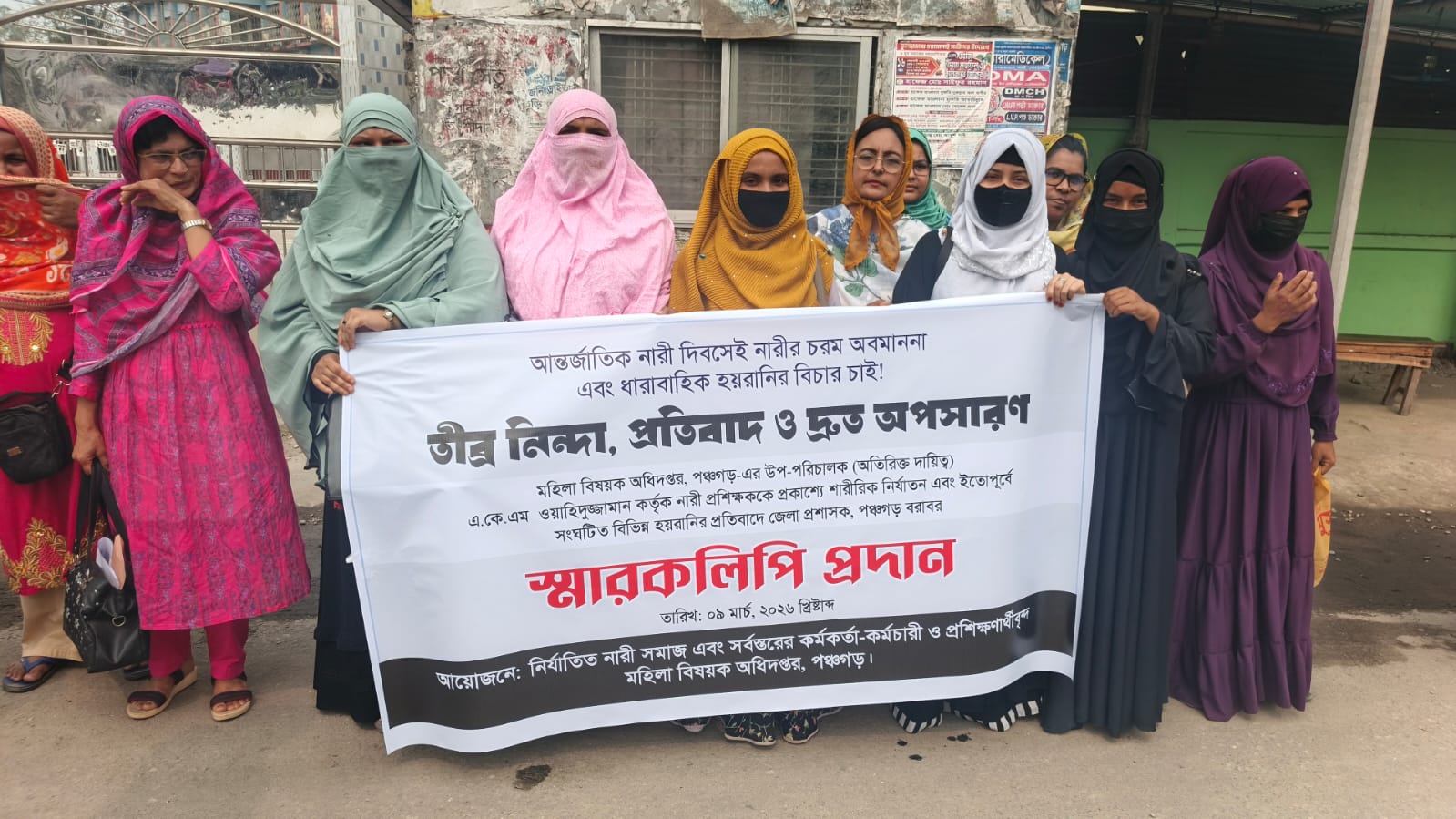বক্তারা অভিযোগ করেন, আন্তর্জাতিক নারী দিবসের কর্মসূচির দিন মহিলা বিষয়ক অধিদপ্তরের উপপরিচালক (অতিরিক্ত দায়িত্ব) এ কে এম ওয়াহিদুজ্জামান