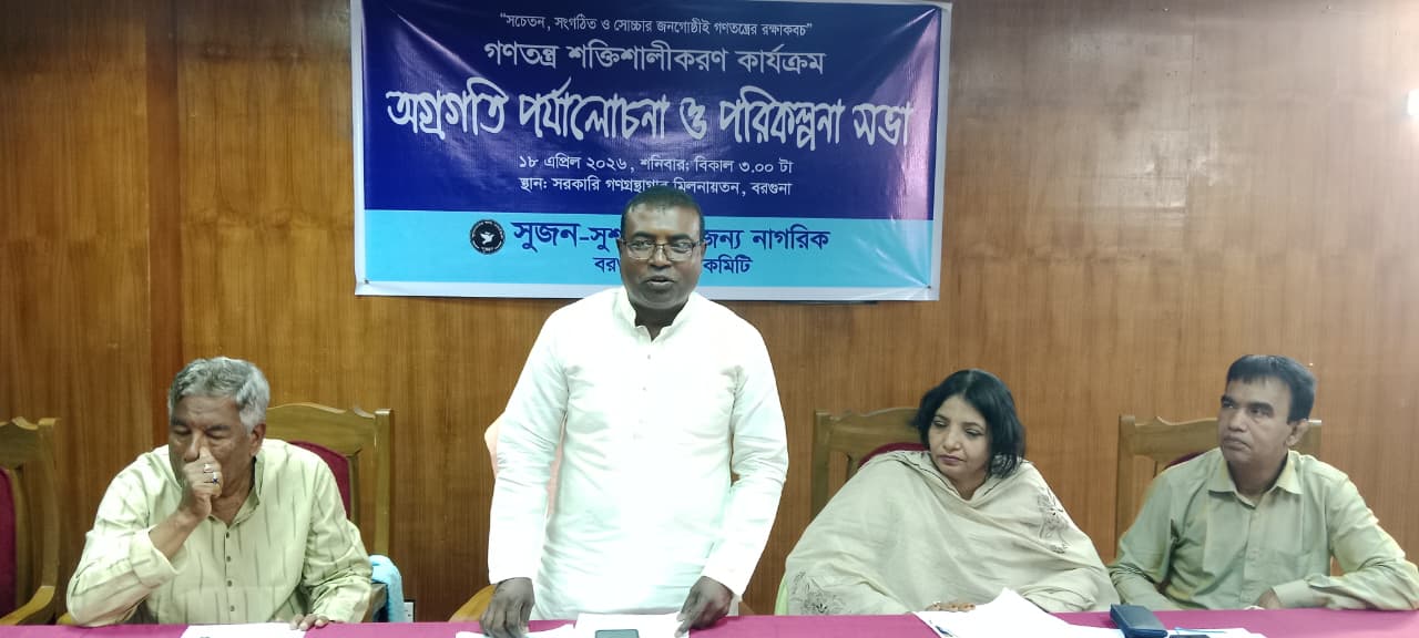 গণতন্ত্রকে আরও শক্তিশালী ও কার্যকর করার লক্ষ্যে বরগুনায় অগ্রগতি পর্যালোচনা ও পরিকল্পনা সভা অনুষ্ঠিত হয়েছে। শনিবার (১৮ এপ্রিল ২০২৬) বিকাল ৩টায় সরকারি গণগ্রন্থাগার মিলনায়তনে এ সভার আয়োজন করা হয়।