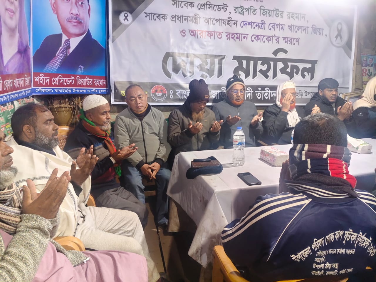 মঙ্গলবার (৬ জানুয়ারি) বাদ আছর বাঘাইছড়ি উপজেলা বিএনপির দলীয় কার্যালয়ে উপজেলা ও পৌর তাতীঁ দলের উদ্যোগে এ ধর্মীয় অনুষ্ঠানের আয়োজন করা হয়। শোকাবহ ও ভাবগাম্ভীর্যপূর্ণ পরিবেশে অনুষ্ঠিত দোয়া মাহফিলে বিএনপি ও এর অঙ্গ-সহযোগী সংগঠনের নেতাকর্মী, স্থানীয় মুসল্লি এবং বিভিন্ন শ্রেণি-পেশার মানুষ অংশগ্রহণ করেন।