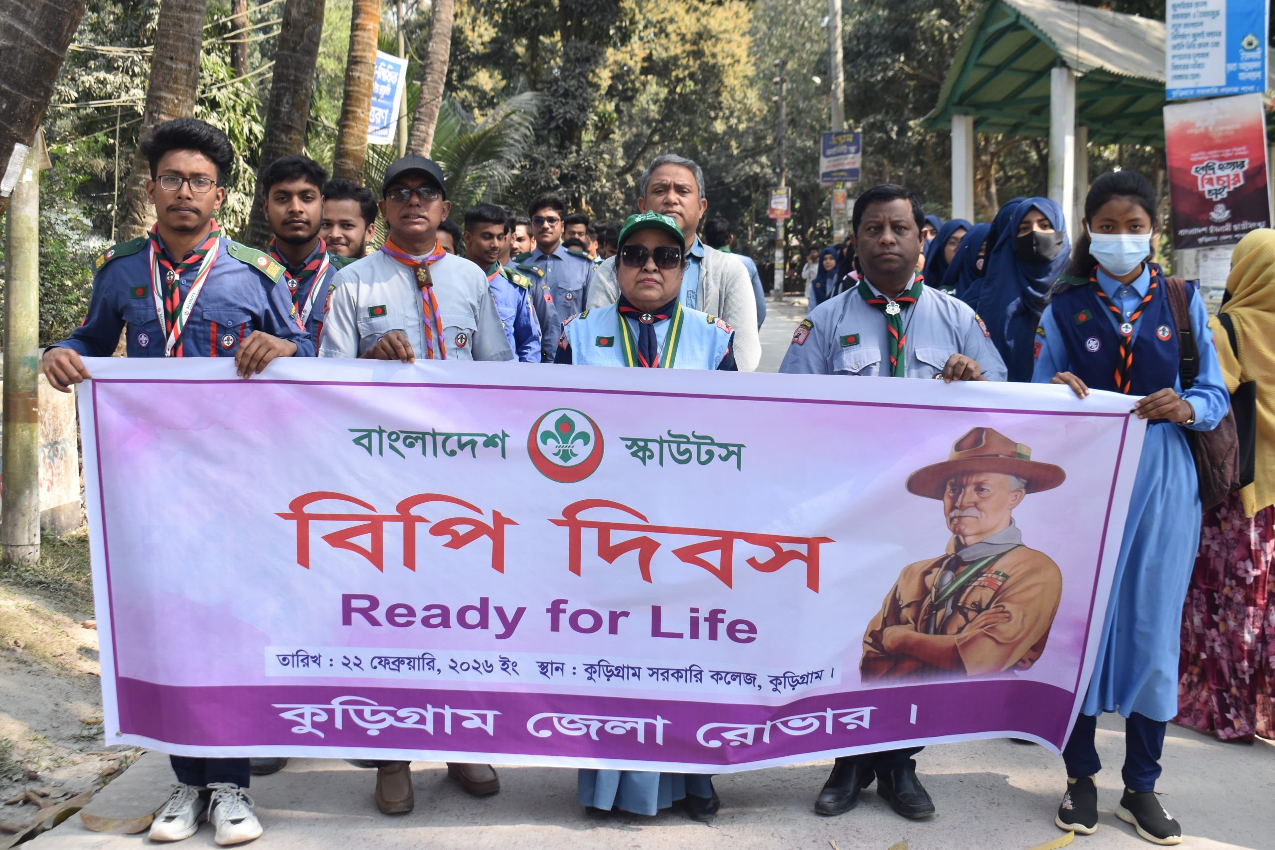 স্কাউট আন্দোলনের প্রতিষ্ঠাতা রবার্ট স্টিফেনসন স্মিথ লর্ড ব্যাডেন পাওয়েল অব গিলওয়েল–এর ১৬৯তম জন্মবার্ষিকী (বিপি দিবস) যথাযোগ্য মর্যাদা ও উৎসাহ-উদ্দীপনার মধ্য দিয়ে উদযাপন করেছে বাংলাদেশ স্কাউটস–এর আওতাধীন কুড়িগ্রাম জেলা রোভার।