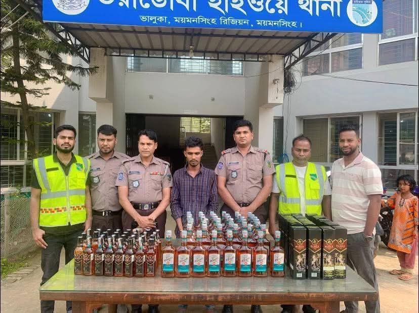 • ভালুকায় হাইওয়ে পুলিশের অভিযান: প্রাইভেটকার ভর্তি ভারতীয় মদসহ আটক ১