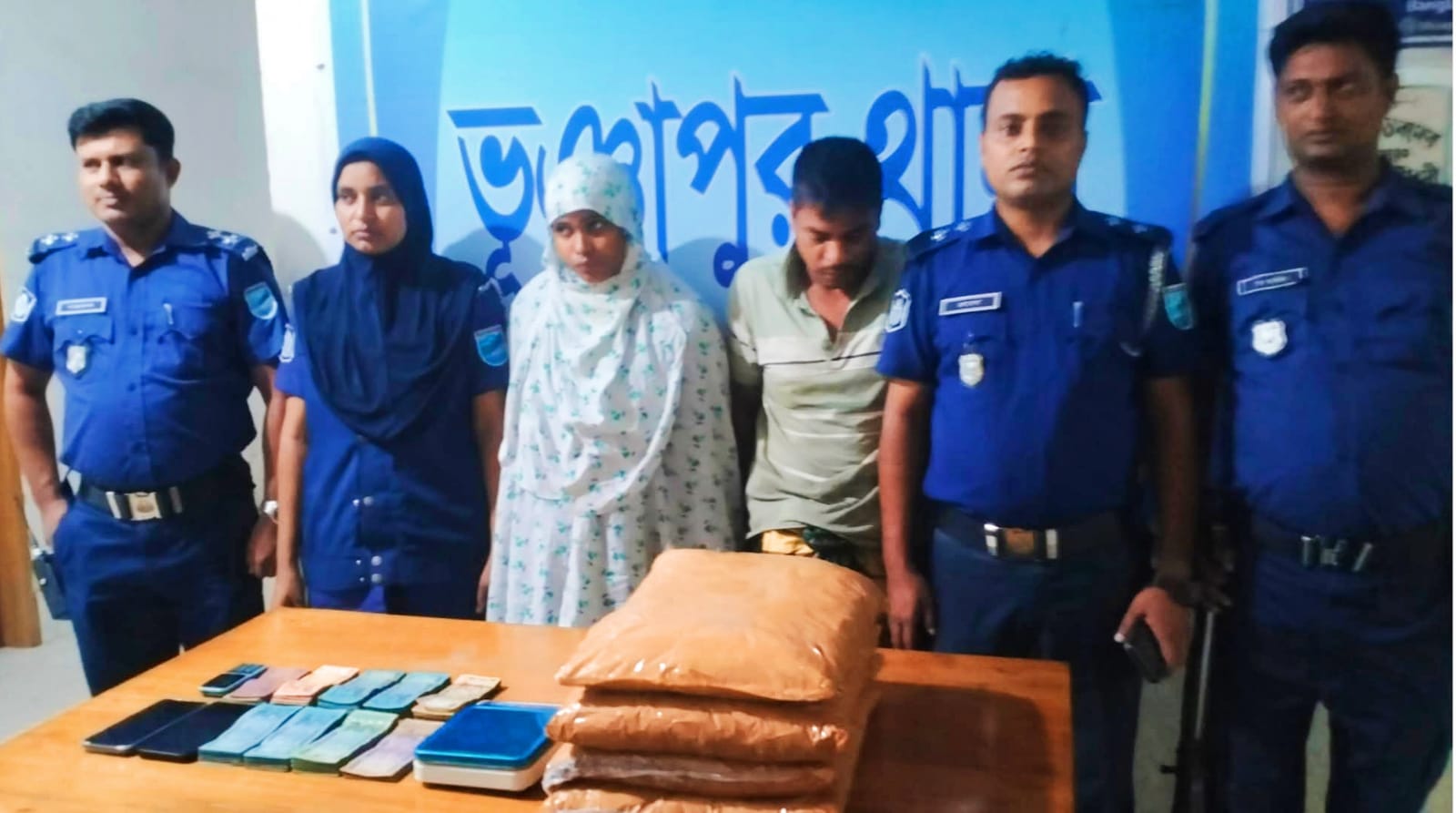 শুক্রবার (৫ সেপ্টেম্বর) রাতে উপজেলার পৌর এলাকায় অবস্থিত লোকমান ফকির মহিলা কলেজের সামনের একটি ভাড়া বাসা থেকে তাদের আটক করা হয়। আটকের পর শনিবার (৬ সেপ্টেম্বর) সকালে তাদের আদালতে পাঠানো হয়েছে। আটককৃতরা হলেন জেলার গোপালপুর উপজেলার নারুচী গ্রামের খন্দকার ছাত্তারের পুত্র খন্দকার সুরুজ (৩২) এবং তার স্ত্রী তানিয়া (৩০)। প্রাপ্ত তথ্য অনুযায়ী, দীর্ঘদিন ধরে খন্দকার সুরুজ ও তার স্ত্রী তানিয়া ভূঞাপুর পৌর এলাকায় লোকমান ফকির মহিলা কলেজের সামনে নাজমুল হকের বাসা ভাড়া নিয়ে মাদক ব্যবসা পরিচালনা করে আসছিলেন। শুক্রবার রাতে গোপন একটি সংবাদের ভিত্তিতে যৌথ বাহিনী অভিযান চালিয়ে তাদের আটক করে। এ বিষয়ে ভূঞাপুর থানার অফিসার ইনচার্জ (ওসি) এ কে এম রেজাউল করিম বিষয়টি নিশ্চিত করে বলেন, “দীর্ঘদিন যাবৎ তারা উপজেলার বিভিন্ন স্থানে মাদক সরবরাহ করে আসছিলেন। তাদের বিরুদ্ধে নিয়মিতভাবে মামলা দায়ের করা হয়েছে।” আটকের পর শনিবার (৬ সেপ্টেম্বর) সকালে তাদের আদালতে উপস্থাপন করা হয় এবং আদালতের নির্দেশনা অনুযায়ী তাদের কারাগারে প্রেরণ করা হয়েছে।