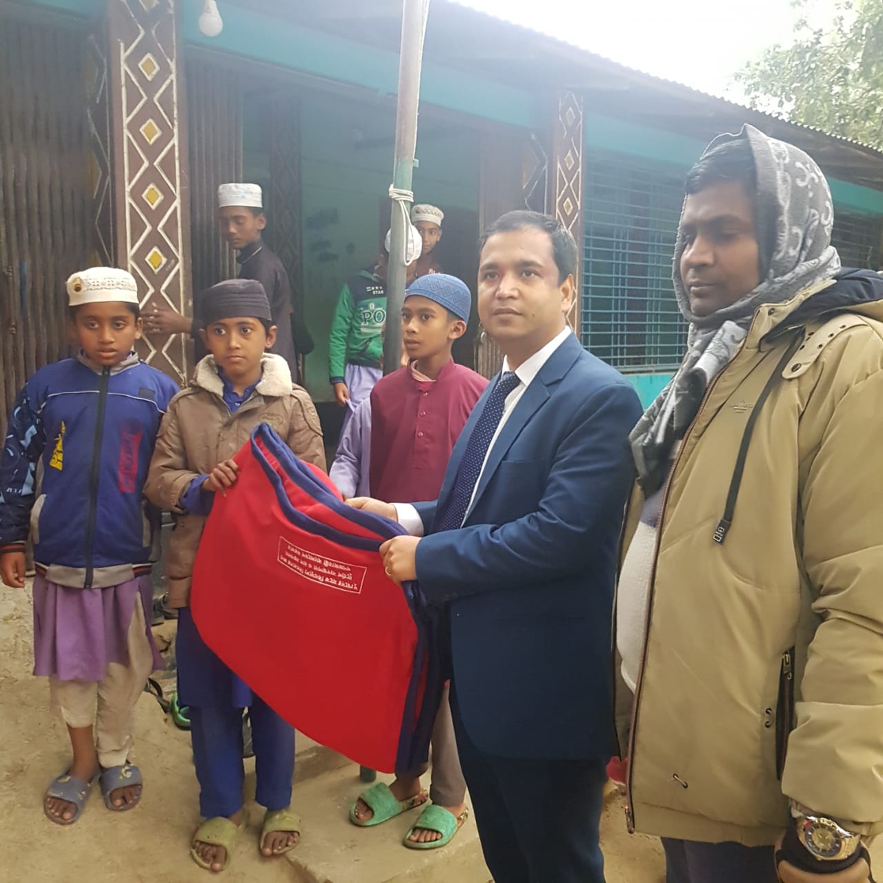 এসময় তার সাথে উপস্থিত ছিলেন মণিরামপুর থানা ভারপ্রাপ্ত কর্মকর্তা মোঃ মীর রেজাউল করিম হোসেন, মণিরামপুর উপজেলা ভুমি কর্মকর্তা এসিল্যান্ড,মোঃ জহিরুল ইসলাম। উপজেলার তিন প্রধাণ কর্মকর্তা গাড়ি করে মাদ্রাসার মাঠে পৌছালে মাদ্রাসাার কমল মতি অসহায় এতিম বাচ্চারা ছুটে এসে তাদের সালাম বিনিময় করে হাতে হাতে করে কম্বল গ্রহন করে।