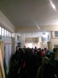 ‎বুধবার সকালে ১৬ই সেপ্টঃ সরেজমিনের চিত্র মোতাবেক শুধু ১২৬ নং কক্ষের ৪২ জন নারী না স্বাস্থ্য কমপ্লেক্সের বহির্বিভাগের কোন কক্ষেই পাওয়া গেলোনা চিকিৎসা সেবার জন্য নির্ধারিত সরকারি  ডাক্তারদের। গর্ভবতী নারীদের ঐ লম্বা লাইনে দাড়িয়ে থাকা নারীদের মধ্য বেশ কয়েকজনকে দেওয়ালে মাথা ঠেকিয়ে দিয়ে দাড়িয়ে যন্ত্রনায় কাতরাতেও দেখা গেছে। সমস্যার কথা জানতে চাইলে উপজেলার চাঁদপুর মাঝিয়ালী গ্রামের ঝুমুর বেগম(২০) অভিযোগ করেনে,সকাল ১০টা হতে দাড়িয়ে আছি ভাই! আর কখন ডাক্তার আসবে! মিটিংয় কি শেষ হয়েছে! আমিতো আর দাড়াতে পারছিনা ভাই। তথ্য সংগ্রহ করছে এ কথা জানতে পেরে ডাক্তারের রুম হতে মুখ ফিরিয়ে গর্ভবতী নারীরা সকলেই অভিযোগ করতে উৎসাহী হয়ে পড়ে।