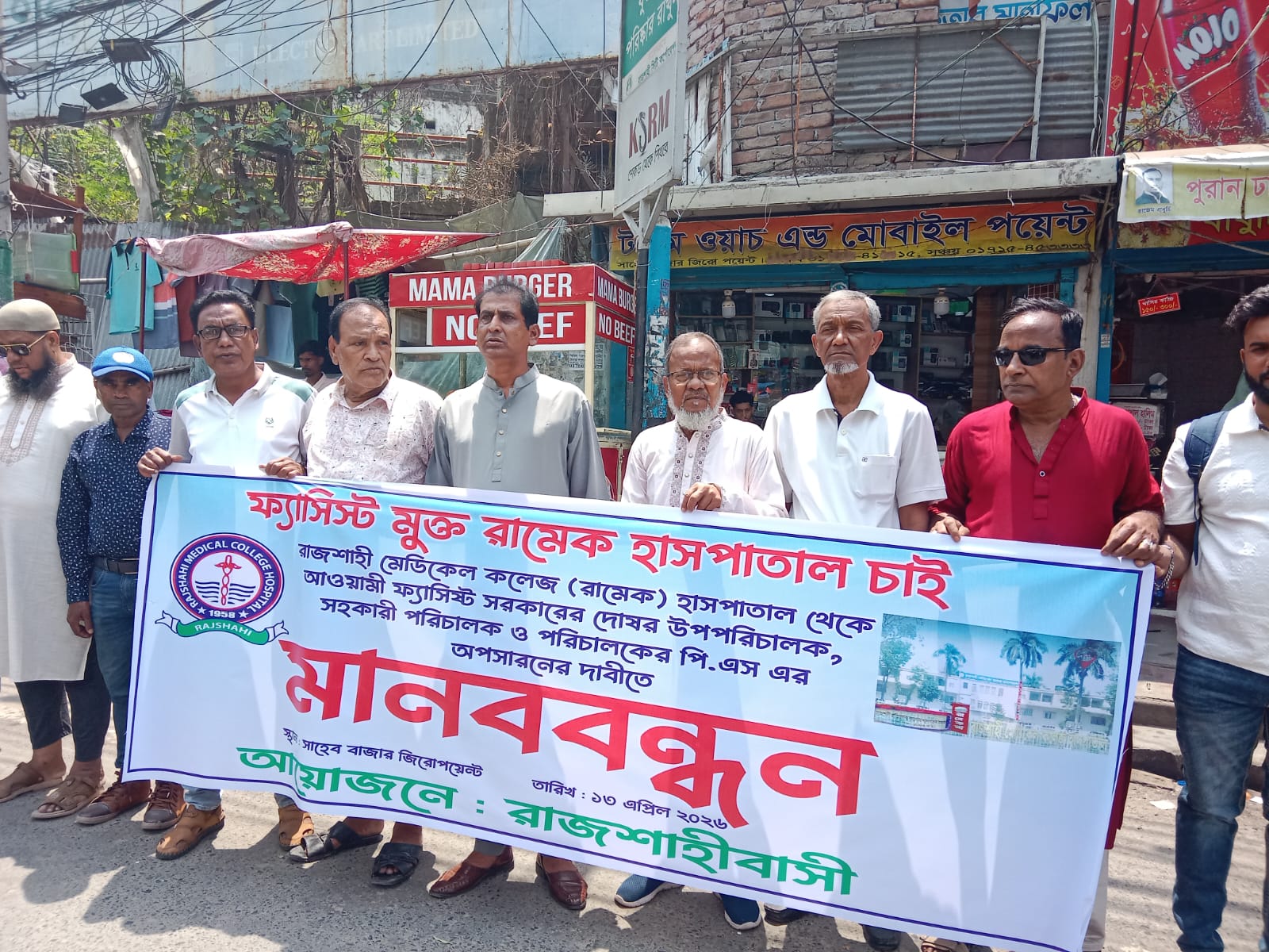 • রামেক হাসপাতালকে ‘ফ্যাসিস্ট ও সিন্ডিকেট মুক্ত’ করার দাবিতে রাজশাহীতে মানববন্ধন