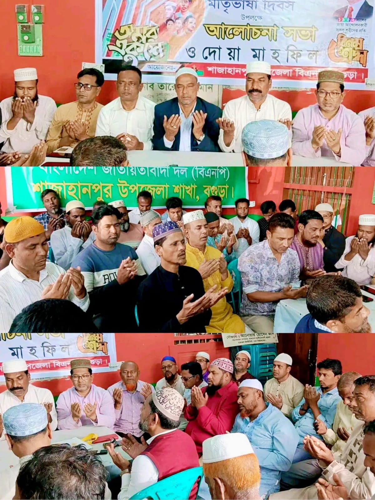 শনিবার (২১ ফেব্রুয়ারি) দুপুরে শাজাহানপুর উপজেলা বিএনপির উদ্যোগে আলোচনা সভা ও দোয়া মাহফিল অনুষ্ঠিত হয়েছে।