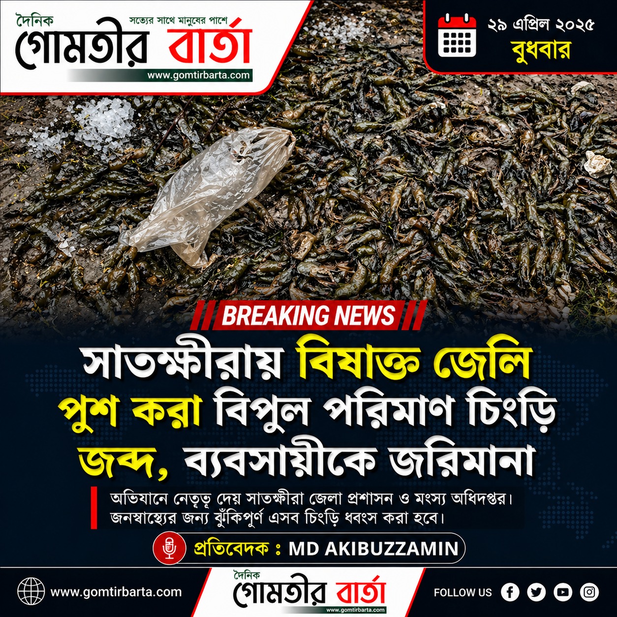 • সাতক্ষীরায় বিষাক্ত জেলি পুশ করা বিপুল পরিমাণ চিংড়ি জব্দ