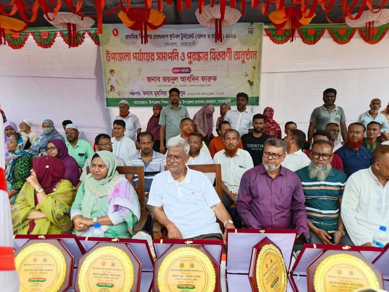 বর্ণাঢ্য আয়োজনের মধ্যদিয়ে নোয়াখালীর সেনবাগে উপজেলা পর্যায়ে প্রাথমিক বিদ্যালয় গোল্ডকাপ ফুটবল টুর্নামেন্টের সমাপনী ও পুরস্কার বিতরণী অনুষ্ঠান অনুষ্ঠিত হয়েছে।