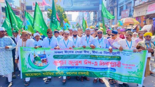 রাজশাহীতে ঈদ এ মিলাদুন্নবীর জশনে জুলুশ ও ধর্মীয় মিছিল অনুষ্ঠিত।