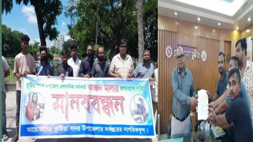 কুষ্টিয়ায় প্রশাসনিক কর্মকর্তার বিরুদ্ধে সাধারণ নাগরিক ও ভুক্তভোগীদের মানববন্ধন ও…
