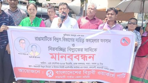 রাঙামাটিতে নিরবচ্ছিন্ন বিদ্যুৎ সরবরাহ নিশ্চিতের দাবিতে মানববন্ধন