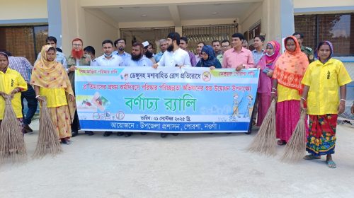 পোরশায় ডেঙ্গু প্রতিরোধে র্যালি ও পরিচ্ছন্নতা অভিযানের উদ্বোধন