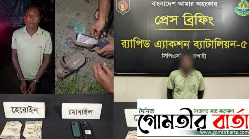 রাজশাহীতে জুতার ভিতরে হেরোইন পাচারকালে ১ জনকে গ্রেফতার করেছে র্যাব-৫