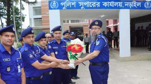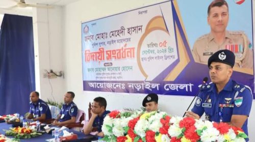নড়াইলের এসপি মেহেদী হাসানকে জেলা পুলিশের বিদায় সংবর্ধনা