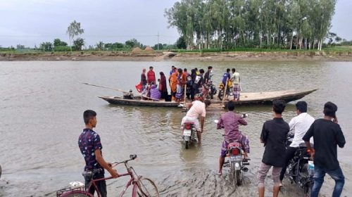 ঝুঁকিপূর্ণ নৌপথে ৪০ গ্রামবাসীর পারাপার, হাজির ঘাটে ব্রিজ দাবি