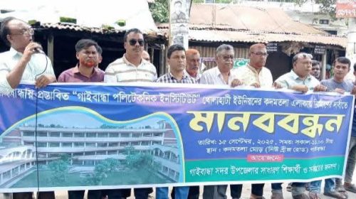 খোলাহাটিতে প্রস্তাবিত পলিটেকনিক ইনস্টিটিউট নির্মাণের দাবিতে মানববন্ধন ও কর্মসূচি