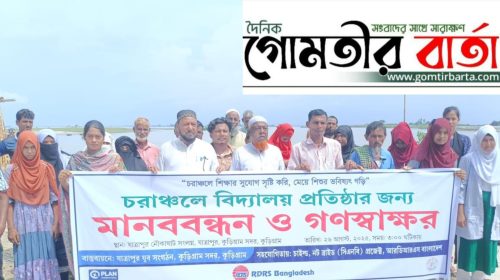 কুড়িগ্রামের চরাঞ্চলে বিদ্যালয় প্রতিষ্ঠার দাবিতে মানববন্ধন ও গণস্বাক্ষর