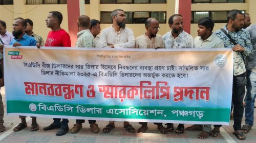 পঞ্চগড়ে বিএডিসি বীজ ডিলারদের সার ডিলার হিসেবে অর্ন্তভূক্ত করতে মানববন্ধন ও স্মারকলিপি প্রদান